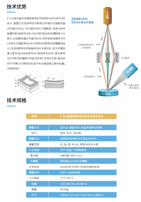 专门用对钢铁冶金行业的材料快速准确检测,例如矿石、炉渣、萤石、焦炭、石灰石、耐火材料等,对重点关注的铁、铜等具有非常优异的分析检测性能,适用于企业和工厂在矿物采选、物流、贸易、冶炼加工过程中的各个环节。